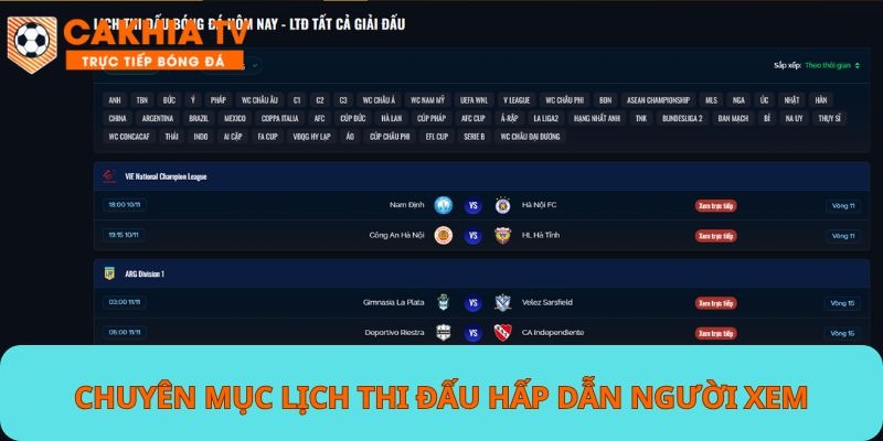 Chuyên mục lịch thi đấu hấp dẫn người xem